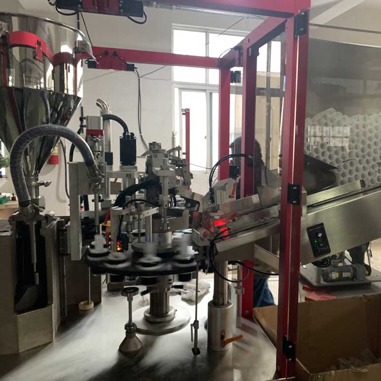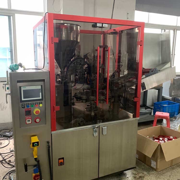 軟管灌裝封尾機(jī)結(jié)構(gòu)緊湊、自動上管(可配套使用提升機(jī)),傳動部分全封閉。由全自動操作系統(tǒng)完成供管、識標(biāo)灌裝、熱溶、封尾、打碼、修整、出成品全過程。由氣動方式完成供管,動作準(zhǔn)確可靠。 回轉(zhuǎn)式軟管模具附有電眼控制軟管中心定位裝置,利用光電感應(yīng)完成自動定位。調(diào)整拆裝簡便,特別適合于生產(chǎn)多規(guī)格軟管直徑的用戶,調(diào)整方便快捷。 適用于對從液體狀到高粘度流體物料進(jìn)行灌裝,并完成管內(nèi)熱風(fēng)加熱、封尾和打批號、生產(chǎn)日期等。