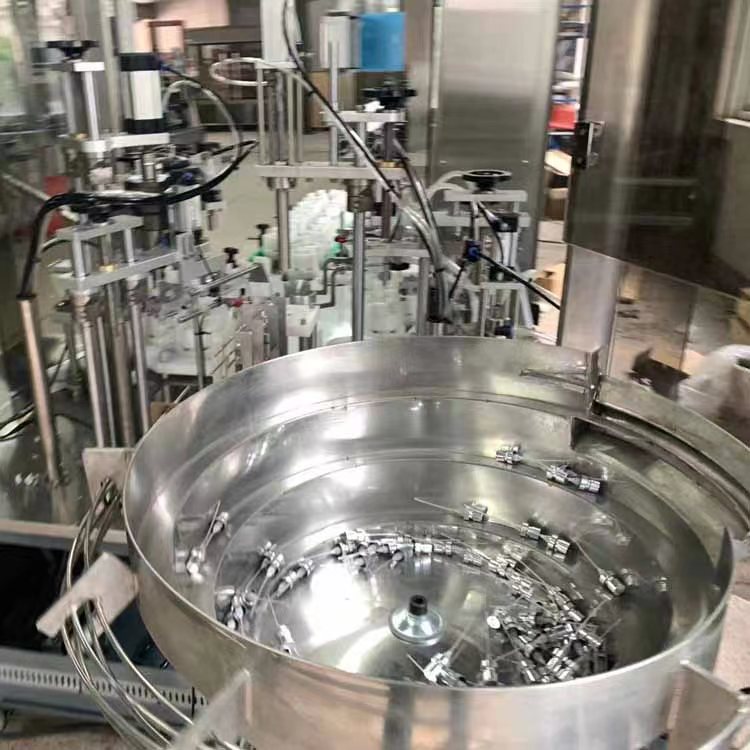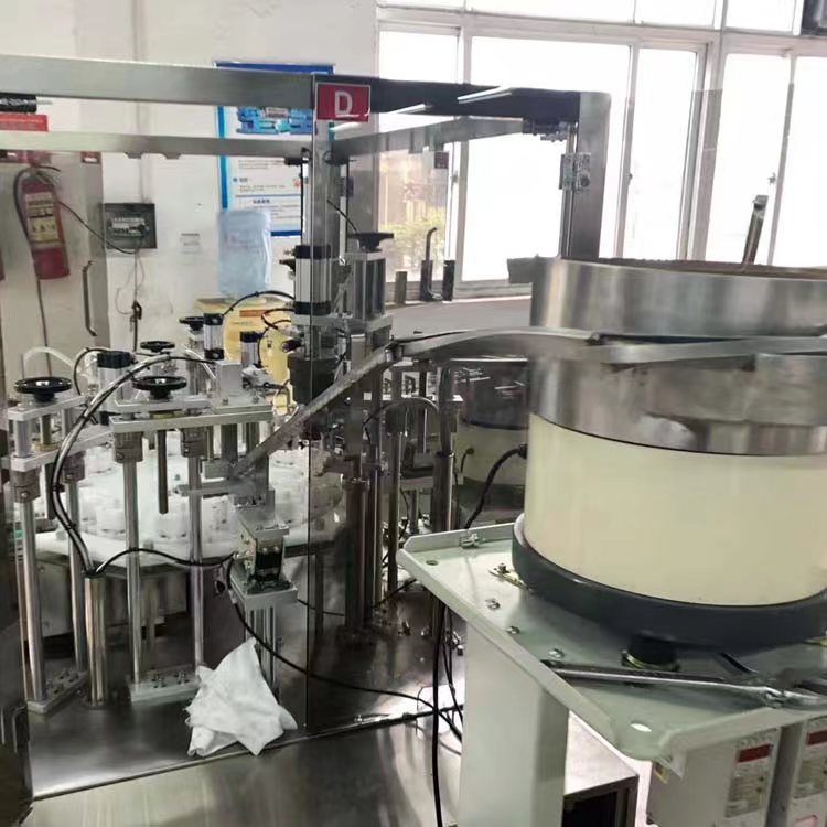 工作流程:整臺(tái)聯(lián)動(dòng)機(jī)具有自動(dòng)灌裝,上蓋,扎蓋的功能,瓶體輸送采用循環(huán)瓶體模具的方式,高速穩(wěn)定地輸送瓶子,活塞氣缸進(jìn)行灌裝,使每只瓶體液面保持一致。上蓋裝置采用機(jī)械手取蓋,扎蓋裝置采用單汽缸扎蓋方式,整機(jī)設(shè)計(jì)科學(xué),操作簡(jiǎn)單。