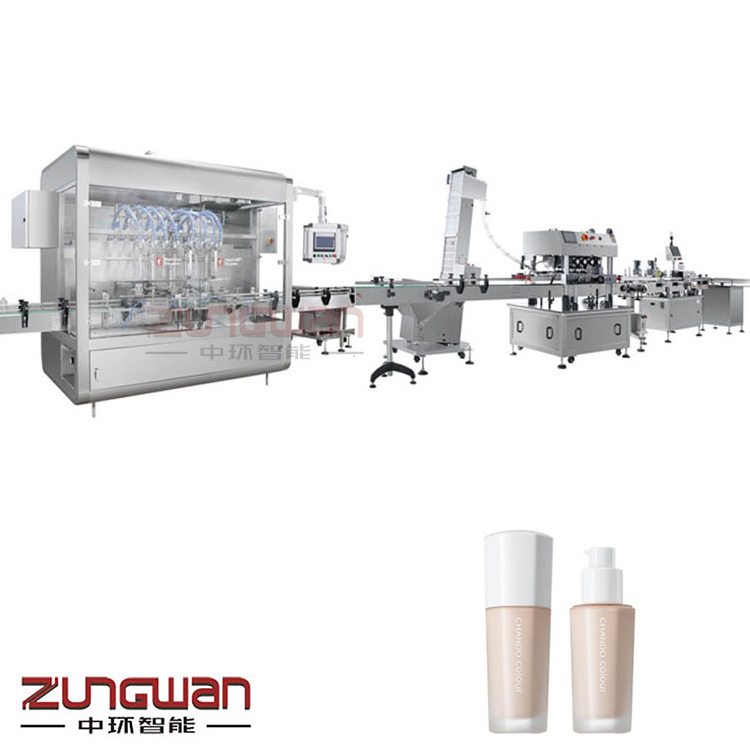 生產(chǎn)線工藝流程包括:人工放瓶、空氣洗瓶、伺服電機(jī)夾帶分瓶、跟蹤式灌裝機(jī)、跟蹤式旋蓋機(jī)、夾瓶輸送帶、底部噴碼、貼標(biāo)機(jī)等工藝流程。本機(jī)適用于液體和膏體物料產(chǎn)品,如:白酒、紅酒、飲料、洗衣液、洗發(fā)水、卸妝水、化妝水、機(jī)油、潤(rùn)滑油、BB霜、隔離霜等。